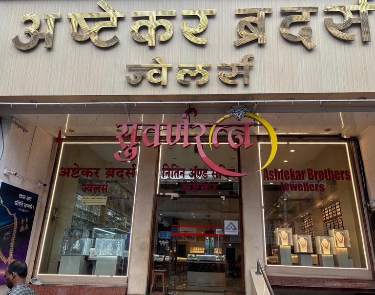 Established in 1983 by the visionary Mr. Prabhakar Ashtekar, Ashtekar Brothers has grown to become a trusted name in fine jewelry in Pune. Located in the heart of the city on Laxmi Road, our spacious 4500 sq. ft. showroom is a reflection of our legacy, values, and commitment to excellence.